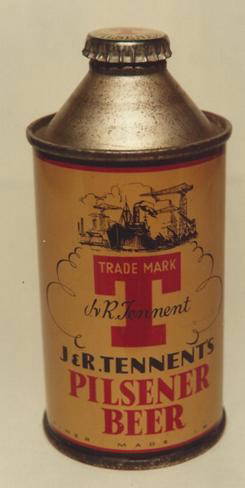 Given Tennent’s pioneering work in packaging, its possible they the were the first ever to make “Pilsener” available in a can. The photo on the right dates from the 1930s.